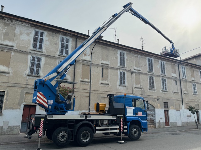 La piattaforma è allestita su un veicolo che fornisce la soluzione sicura ed efficace per il lavoro in quota.